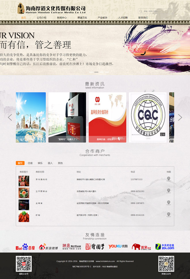 案例背景:海南厚道文化傳媒有限公司是一家具有前瞻性部署、專業(yè)化運作和規(guī)?;?jīng)營的新興文化創(chuàng)意企業(yè),是進(jìn)行企業(yè)文化傳播、發(fā)展民族文化產(chǎn)業(yè)和弘揚民族正氣的專業(yè)機構(gòu)。總部位于海南省??谑?。