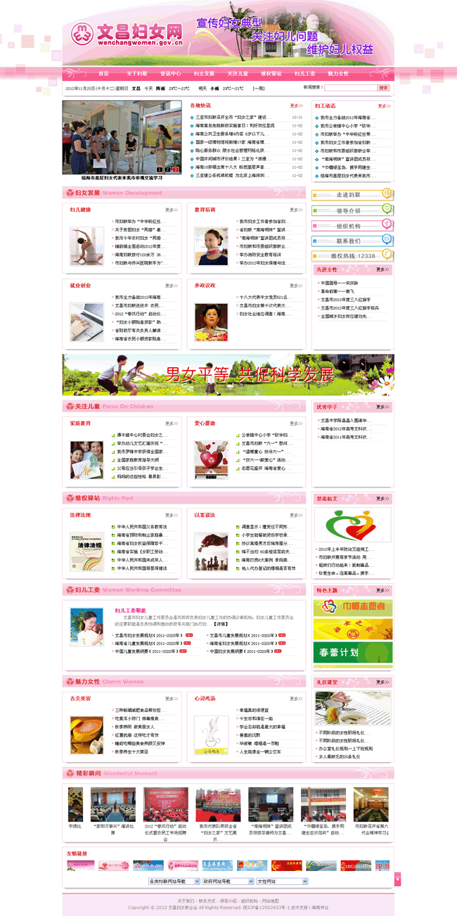 近年來,文昌市婦聯(lián)以維護婦女兒童合法權(quán)益為己任,積極推進《文昌市婦女發(fā)展規(guī)劃》和《文昌市兒童發(fā)展規(guī)劃》的實施。以“雙學雙比”、“巾幗建功”、 “文明家庭”、“雙合格”等活動為載體,圍繞黨政所急、婦女所需、婦聯(lián)所能,引領(lǐng)廣大婦女積極投身到全面建設(shè)小康社會的偉大實踐,在社會主義“三個文明” 與構(gòu)建和諧文昌中發(fā)揮了積極作用。