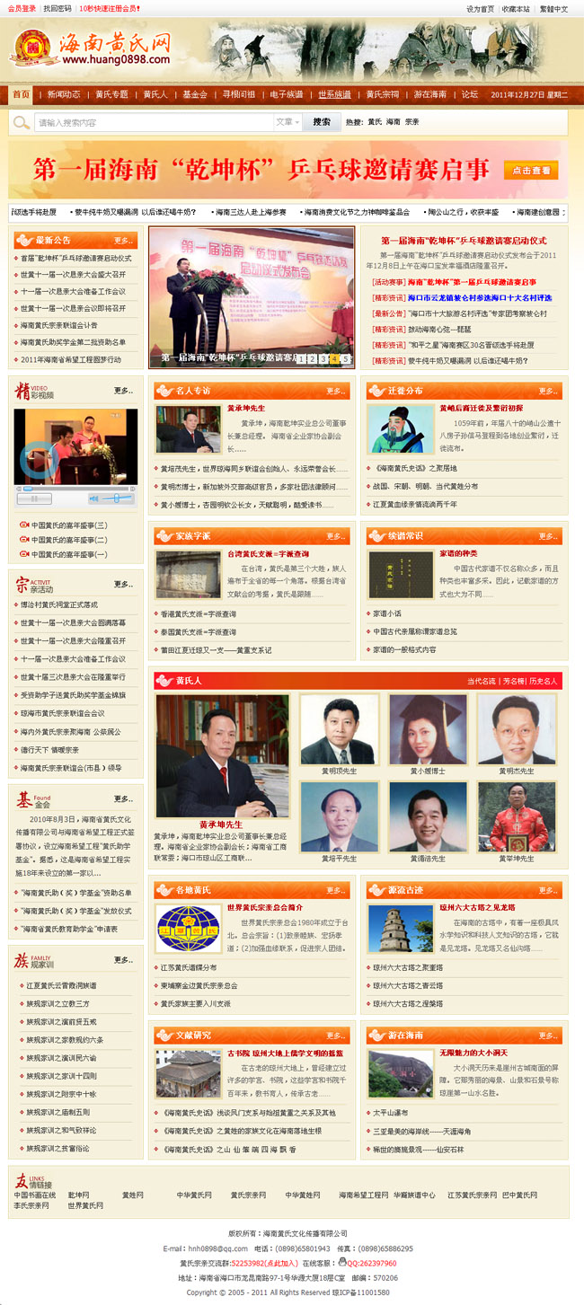 案例背景:海南黃氏網(wǎng)是海南黃氏宗族宗親活動信息發(fā)布與黃姓電子族譜發(fā)布的官方網(wǎng)站。