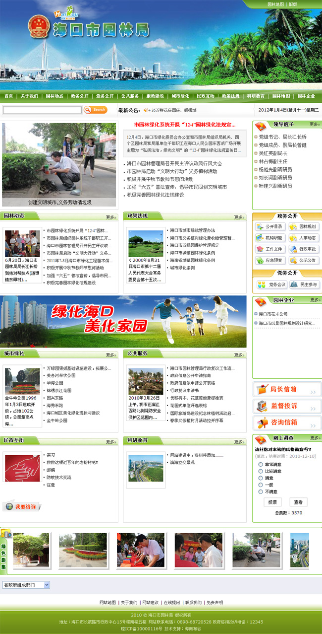 案例背景:海口市園林管理局是全市園林綠化行政管理部門,負責園林行業(yè)管理,城市綠地系統(tǒng)規(guī)劃,園林綠地建設、管理及養(yǎng)護,園林科研等主要工作。海口城市園林綠化建設是發(fā)展??诼糜萎a業(yè)的重要基礎,是提高城市品位、改善人居環(huán)境的重要措施,目前建城區(qū)綠地率達37.1%,綠化覆蓋率41.2%,人均公共綠地面積12平方米。