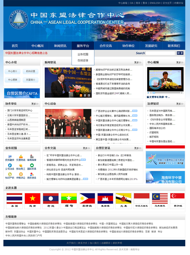 案例背景:環(huán)宇中國(guó)東盟法律合作中心于2011年底,經(jīng)中華人民共和國(guó)民政部批準(zhǔn)登記,中國(guó)法學(xué)會(huì)為其業(yè)務(wù)主管單位,是專門承擔(dān)中國(guó)與東盟之間法律合作任務(wù)的非官方社會(huì)組織。中心由中國(guó)法學(xué)學(xué)術(shù)交流中心、北京大成律師事務(wù)所、海南仲裁委員會(huì)共同舉辦。中心旨在建設(shè)中國(guó)-東盟法律資源整合型服務(wù)平臺(tái),通過促進(jìn)中國(guó)與東盟各國(guó)法律實(shí)務(wù)界、理論界之間的交流與合作,整合各國(guó)間的法律服務(wù)資源,進(jìn)而整合法律服務(wù)資源所涉的中國(guó)與東盟各國(guó)間的經(jīng)濟(jì)、社會(huì)資源,提升中國(guó)-東盟自由貿(mào)易區(qū)內(nèi)(CAFTA)跨國(guó)法律服務(wù)質(zhì)量及效率,為中國(guó)與東盟在貿(mào)易、投資、旅游、教育、文化等領(lǐng)域的合作貢獻(xiàn)力量,為CAFTA發(fā)展發(fā)揮積極作用。