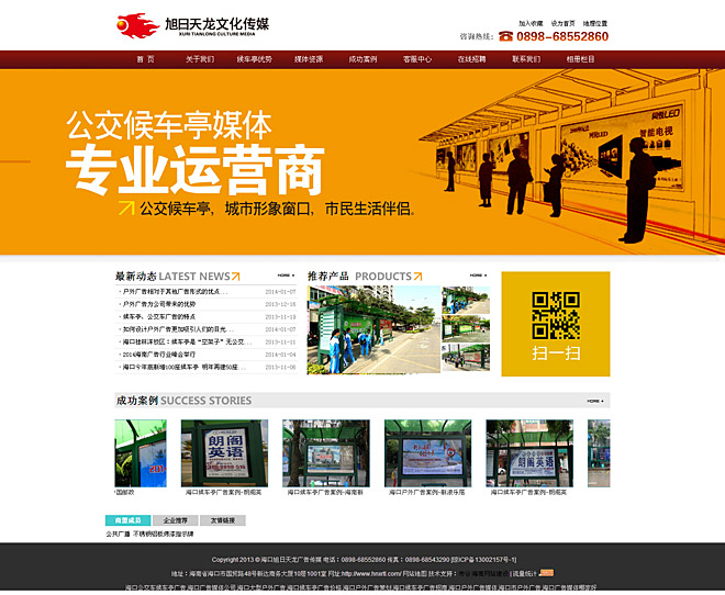 海南旭日天龍文化傳媒有限公司是一家集??趶V告媒體開發(fā)、經(jīng)營、發(fā)布,大型商業(yè)活動策劃執(zhí)行的文化企業(yè)。目前公司基礎(chǔ)主業(yè)是專業(yè)從事海口候車亭廣告、海口戶外廣告經(jīng)營發(fā)布,現(xiàn)公司自身擁有??谑屑叭珝u各縣市公交候車亭燈箱媒體近600個廣告位,媒體終端有效覆蓋大型商業(yè)區(qū)、樓盤、學(xué)校、機關(guān)單位、車站等人流、車流旺區(qū),與國內(nèi)多家品牌客戶建立了長期廣告發(fā)布合作關(guān)系。